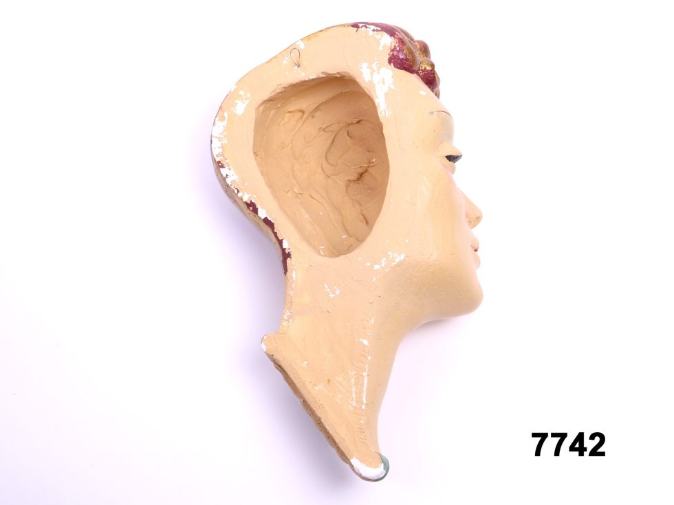 The 30s wall mask is a very attractive wall decoration typical of the 1930s colourful home era. The wall mask is a representation of a lady and how glamourous she looks with the hairstyle and makeup of the time. The wall mask would display well on a hallway or living room wall or in a study location. To maintain the condition of the 30s wall mask use a soft cloth and dust it occasionally.