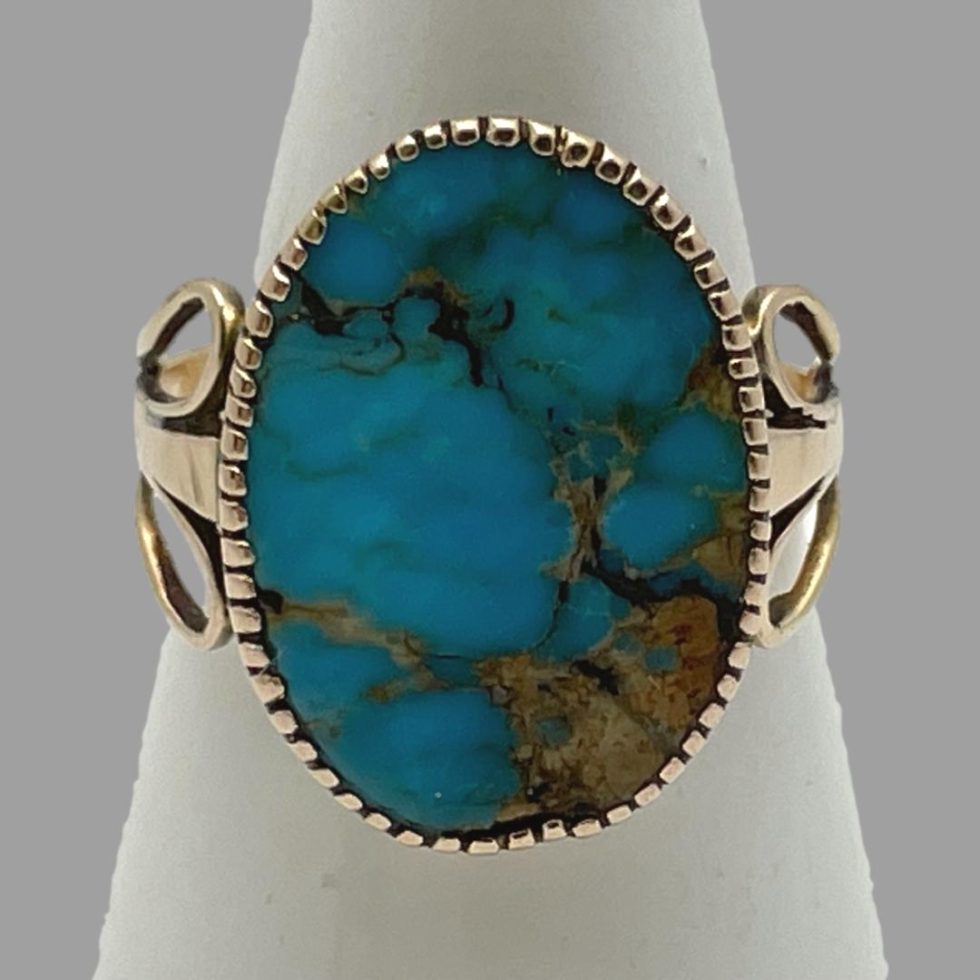 To maintain the condition of the antique gold turquoise ring, we recommend polishing it with a lint-free cloth to preserve its shine.