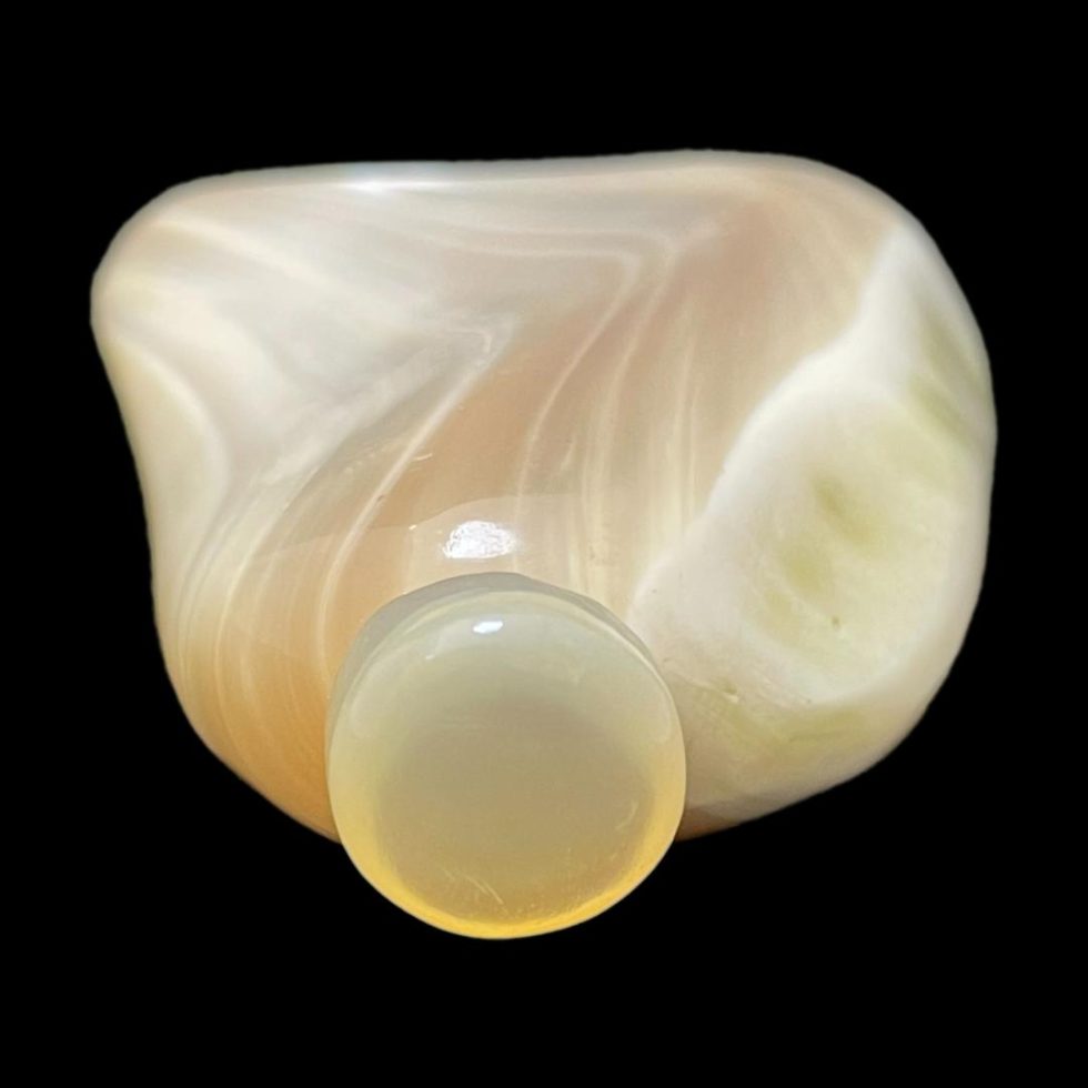 To care for the antique M.O.P. snuff bottle, we suggest polishing it with a soft, clean cloth to keep it dust-free.