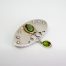 The art nouveau 950 silver & peridot brooch is a beautiful example of a piece of high quality antique jewellery. The oval brooch is the work of Murrie Bennett & Co and has a high grade silver hallmark of 950. The brooch features two oval-cut sparkling peridot stones which add beauty to this fine silver brooch. To care for the art nouveau 950 silver & peridot brooch we suggest using a soft cloth and gently polish it when required.