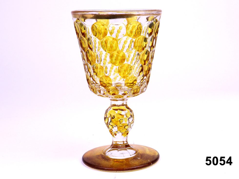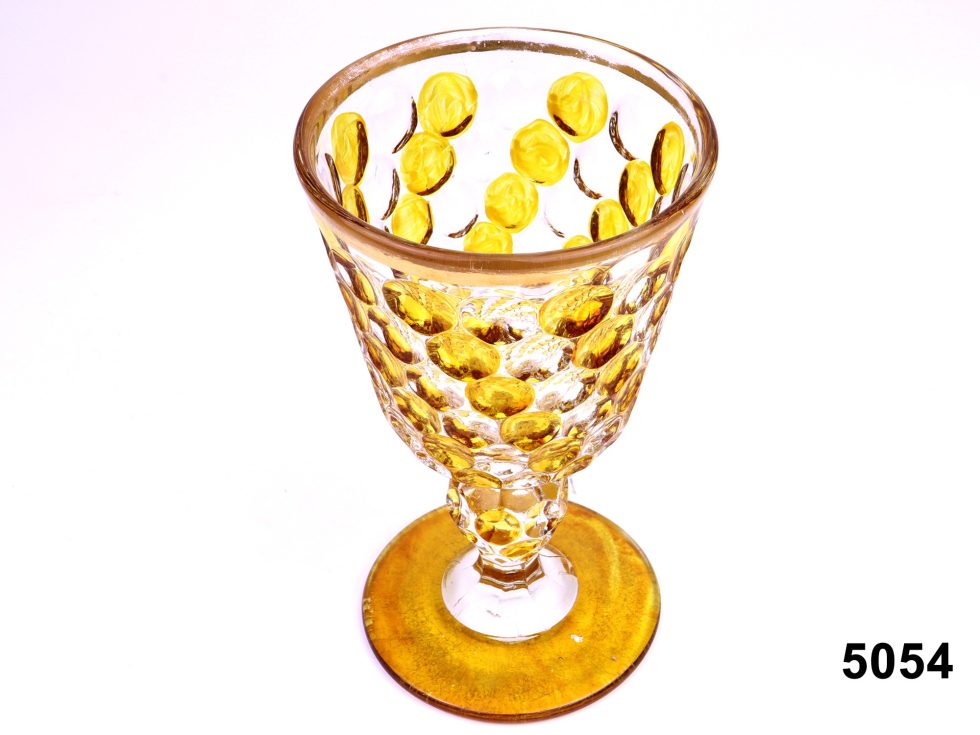 19th Century Bohemian goblet in golden yellow and clear honeycomb design. Ideal for mead