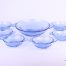 The Deco glass dessert set is from Czechoslovakia and is the work of Carl Stolze and features 6 dessert bowls and a large serving bowl. The colourful blue set would look well on a dining room table containing an after-dinner treat. To care for the Deco glass dessert set, we suggest a wash in soapy water after use and drying thoroughly.