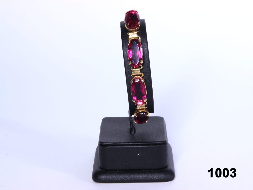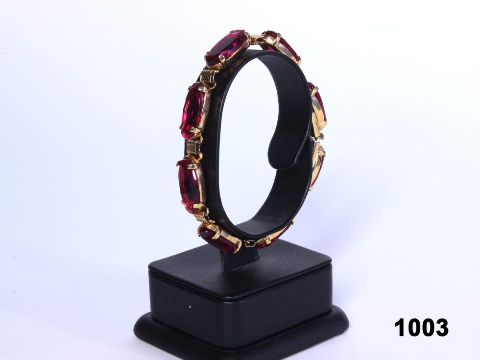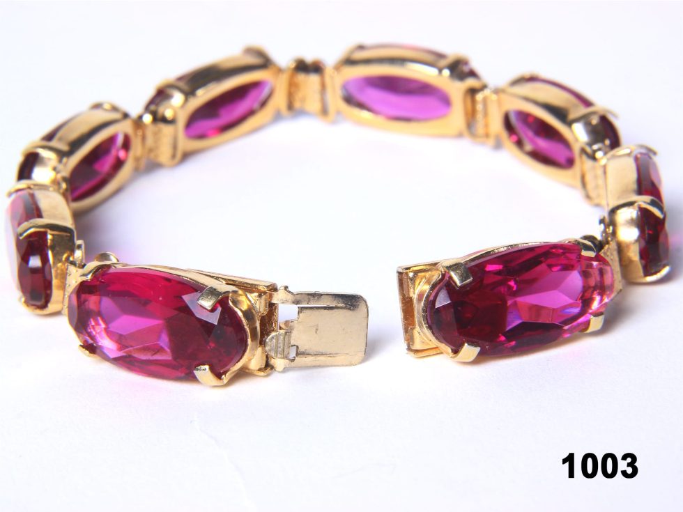 Pretty costume jewellery bracelet in gilt metal with oval pink cut glass stones throughout