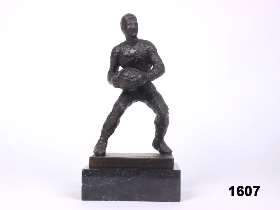 The modern bronze by E.Tarrech is a model of a basketball player and it weighs a heavy 5000g! The bronze has good detailing and has the basketball player in an action pose. The bronze would display well in a study or lounge as a focal point. To care for the modern bronze by E.Tarrech use a soft cloth and polish it as required.