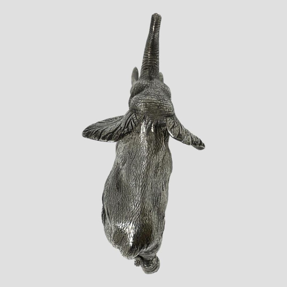 The modern sterling silver covered elephant has a hallmark for Sheffield 2007 and is the work of the Camelot factory. The realistic model is attractive and would display beautifully in the home