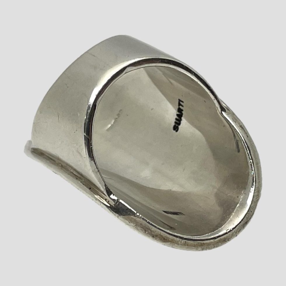Statement sterling silver ring by Suarti. A fabulously eye catching statement ring in sterling silver with concentric beading by Suarti Bali. Ring size K.5 / 5.5. Weight 17 grams.