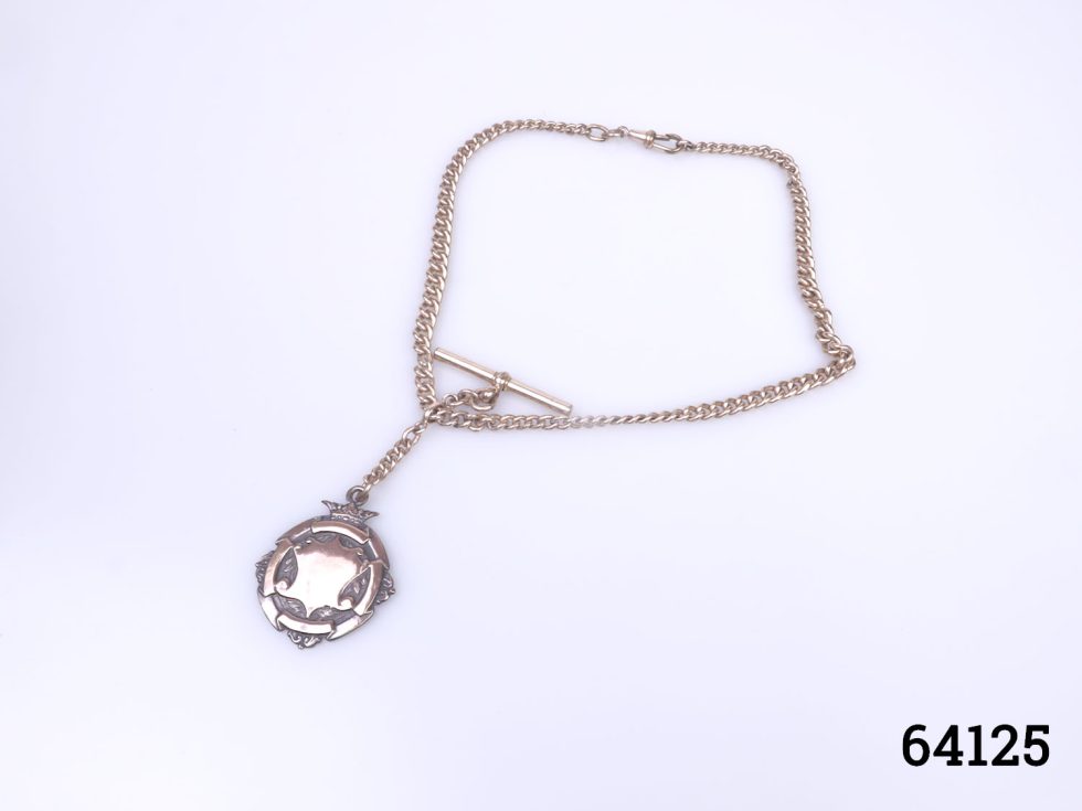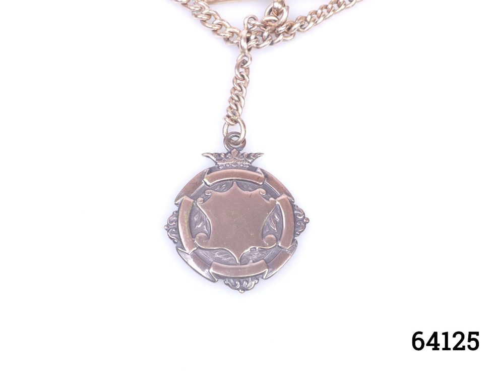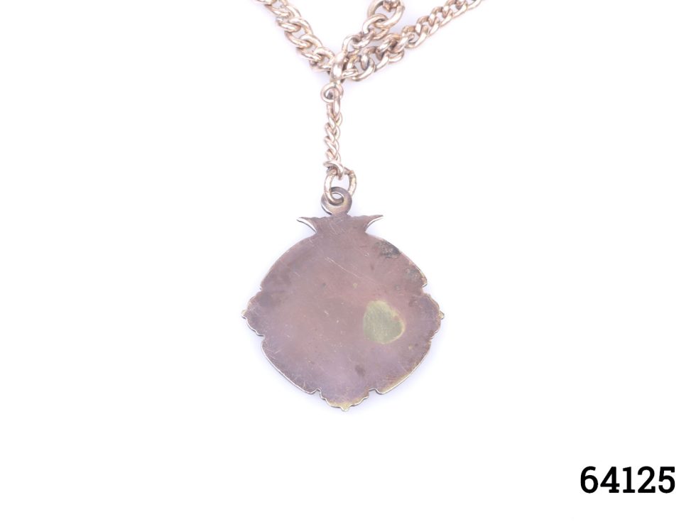 Victorian watch chain and fob in gilt metal with copper decorated fob. Empty fob cartouche for personalisation.