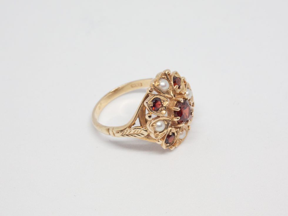 Vintage 9 Karat Gold Garnet & Pearl Ring