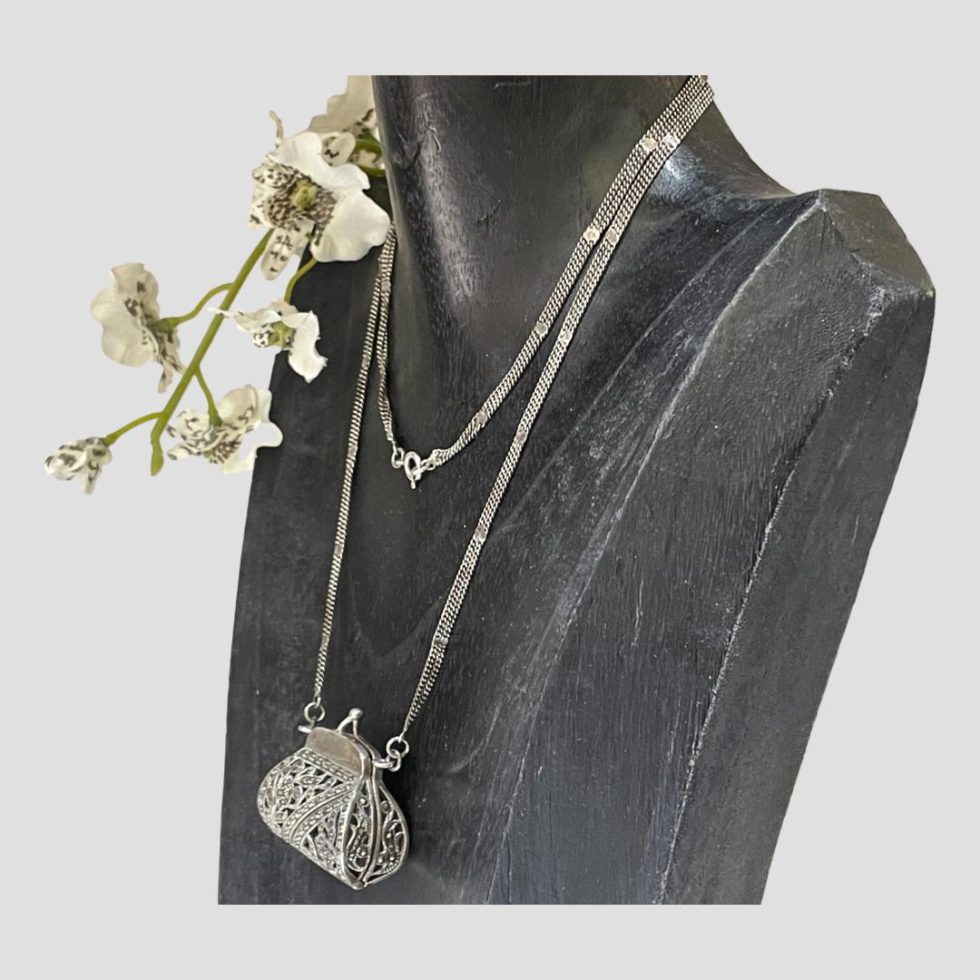 To maintain the vintage silver purse pendant & chain, we recommend using a lint-free cloth and polishing it to keep it shining.