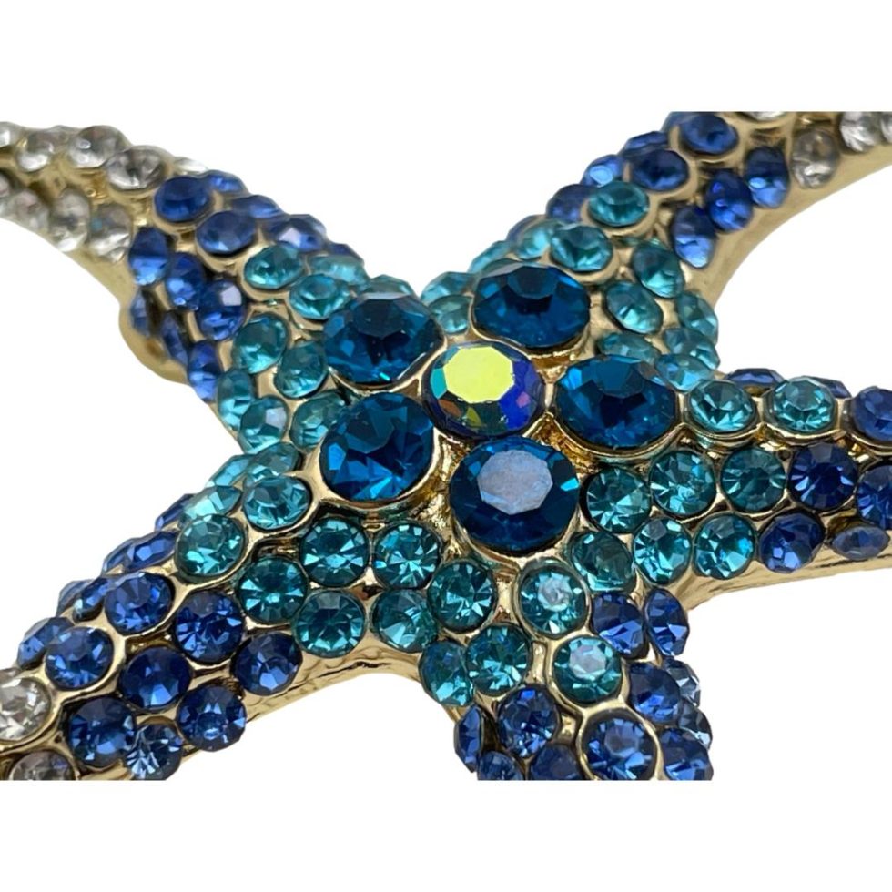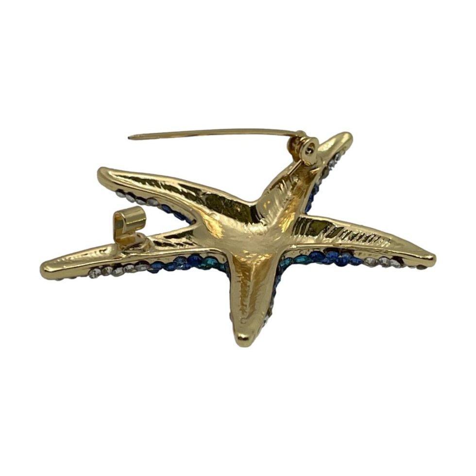The vintage starfish brooch is a stunning piece of costume jewellery, predominantly featuring vibrant blue crystals in its centre.