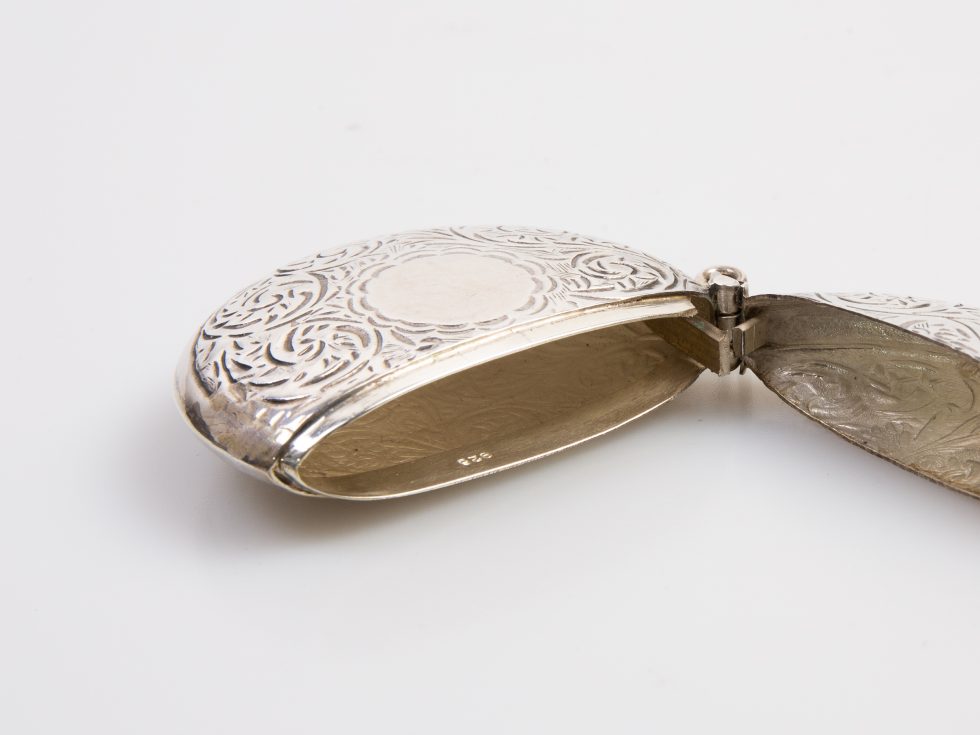 The vintage sterling silver circular vesta case is 925 silver and is an unusual shape for a vesta. The vesta has decorative engraving on its top and an empty cartouche ready for you to personalise. Just Inside the vesta case a date of 1970 is visible. The vintage sterling silver circular vesta would be a lovely gift and a great addition to an existing vintage vesta collection. To care for the vesta, use a soft cloth and polish it when required.