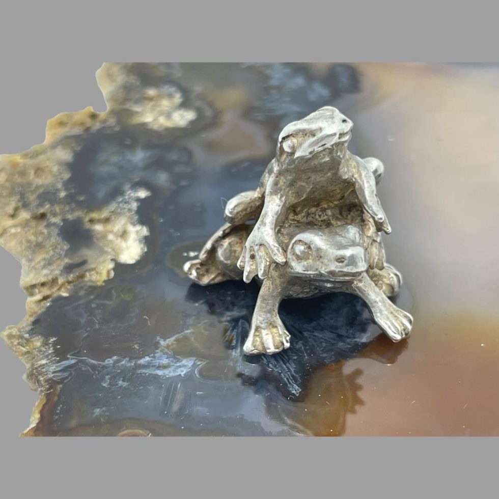 The vintage sterling silver frogs are a delightful ornamental piece that features two frogs playing leapfrog!