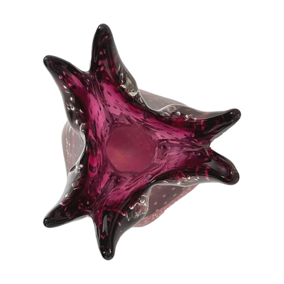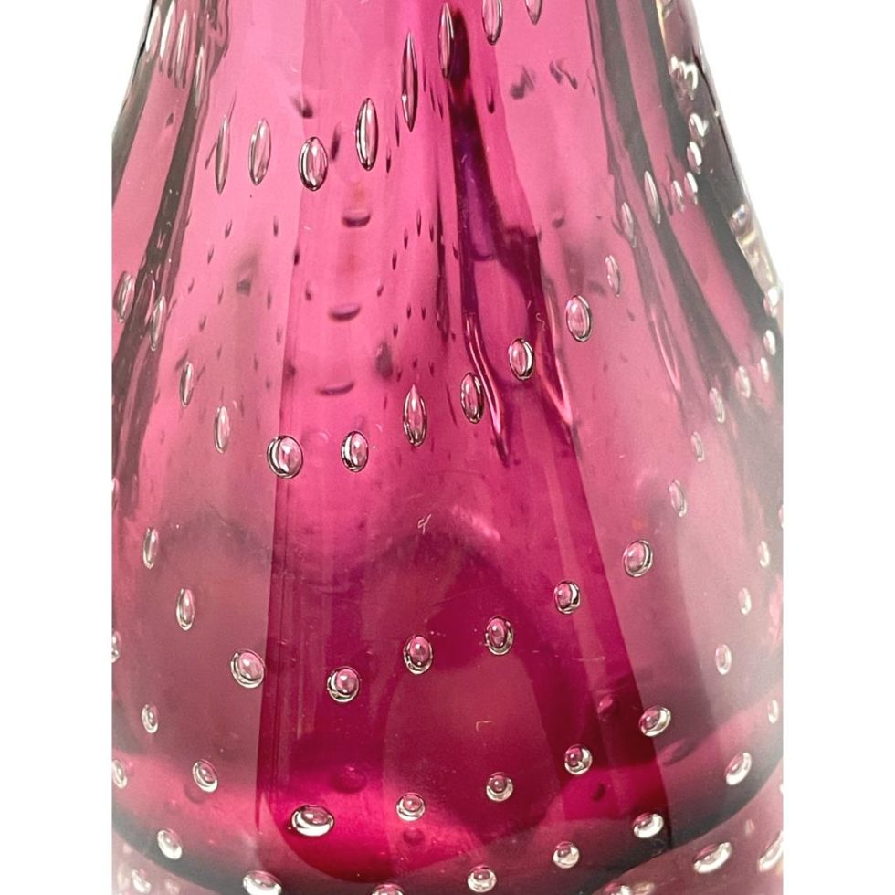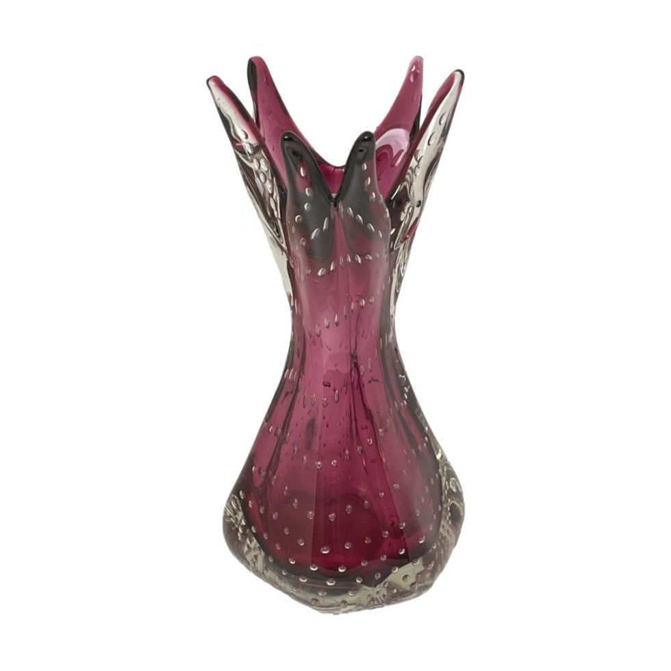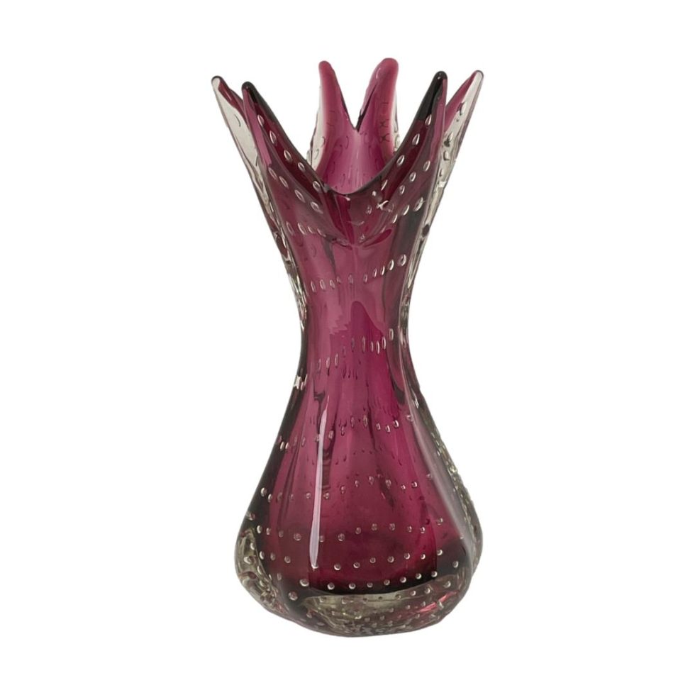 Whitefriars controlled bubble glass vase. A fabulous vintage fluted vase with multiple small controlled bubbles encased within magenta coloured glass.