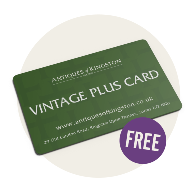 Let us introduce to you, the Antiques of Kingston Vintage Plus Card. Here at Antiques of Kingston we want to give back to our local antiques shoppers, so we have created our Vintage Plus Card. Bring your card when you shop with us and discover the many ways which you can benefit. In summary you will get..